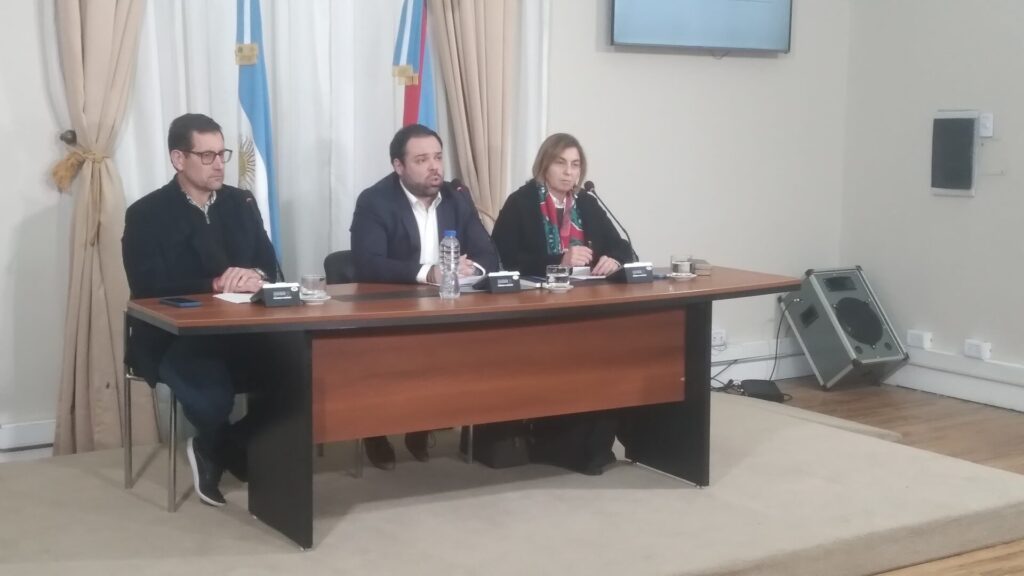 “Si no levantan los paros vamos a evaluar firmemente pedir la conciliación obligatoria”, señalaron en la conferencia de prensa que desarrollaron el ministro de Gobierno y Trabajo, Manuel Troncoso, y el secretario de Finanzas, Uriel Brupbacher, junto a la titular del CGE, Alicia Fregonese.